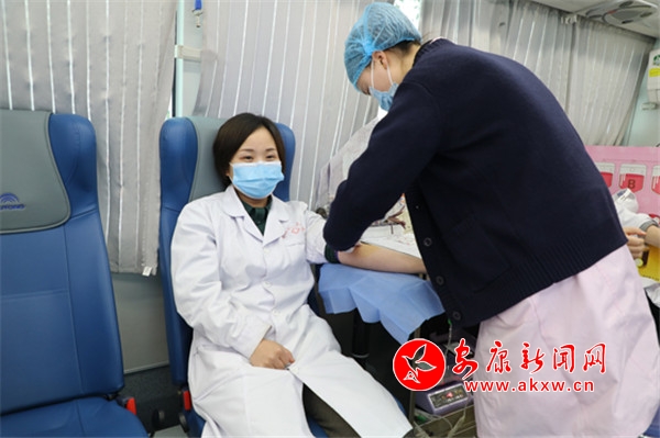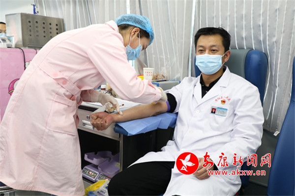 院長(zhǎng)張海波,副院長(zhǎng)吳小艷帶頭獻(xiàn)血。