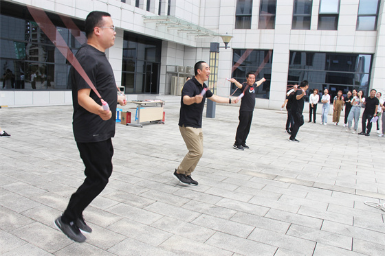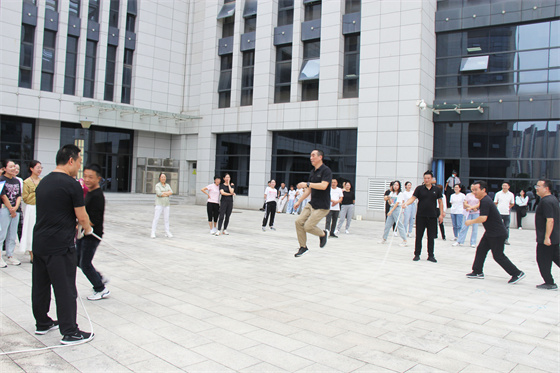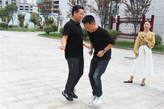 當然比賽中還有許多“小插曲”,有的選手鞋帶松了,有的選手繩子扭了,有的選手眼鏡掉了,有的選手被大繩打到疼得哇哇叫,但正是因為有了這些小插曲,才讓參與者的笑聲更響,讓這場比賽變得更生動有趣,也讓“快樂工作、幸福生活”這句話有了最真實的體現(xiàn)。