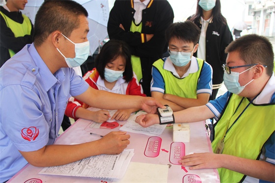 前來(lái)獻(xiàn)血的學(xué)生里有不少人還不滿十八歲,因?yàn)椴粔蚍ǘǐI(xiàn)血年齡,大家都帶著些遺憾不肯離開(kāi),血站工作人員見(jiàn)狀把大家組織在一起,給他們發(fā)放了無(wú)償獻(xiàn)血宣傳冊(cè),鼓勵(lì)他們先了解相關(guān)知識(shí),等年齡夠了再來(lái)?!爸灰袗?ài)心,什么時(shí)候來(lái)都不遲!”工作人員笑瞇瞇地鼓勵(lì)到。