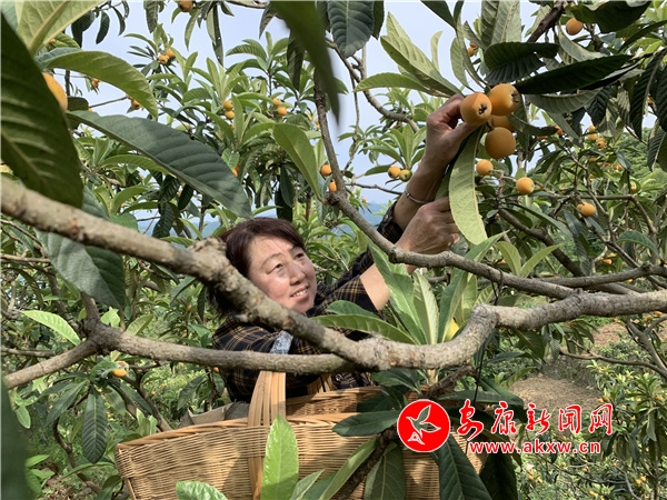 本網(wǎng)訊(記者?唐正飛)立夏過后,藍天白云下,一湖碧水倒映著湖畔的白墻黛瓦、花紅柳綠,一只小船劃過湖面,一層層碧波擴散開來,一顆顆金果隨波而動,點綴著瀛湖的碧水青山。經(jīng)過村民多年的栽培,漢濱區(qū)瀛湖鎮(zhèn)清泉枇杷成為了此時本地應(yīng)季水果的代名詞,萬綠叢中的金果讓村民笑臉更加燦爛。