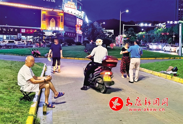 6月18日,有市民帶著孩子在安康城區(qū)西津漢江大橋(三橋)南頭街心綠地內(nèi)玩耍,旁邊就是“小草微微笑 請(qǐng)您旁邊繞”的公益廣告牌(圖1)。不時(shí)還有摩托車、電動(dòng)車從人行道經(jīng)過(圖2),存在安全隱患。(記者 潘潤生 攝)