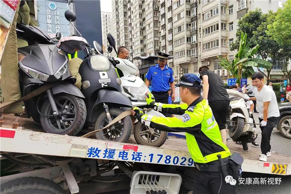 針對車輛亂停亂放等交通秩序管理問題,執(zhí)法人員對花園大道、秦嶺大道、學(xué)府路、高新四路等主次干道沿線開展全天候整治,并向沿街商戶下發(fā)摩托車、電動車規(guī)范停車告知書。對占用人行道、消防通道、公交泊位等行為進行拍照取證后強制拖移。同時,向市民群眾發(fā)放文明交通宣傳彩頁,引導(dǎo)大家自覺摒棄交通陋習(xí)、遵守交通法律法規(guī),安全文明出行。