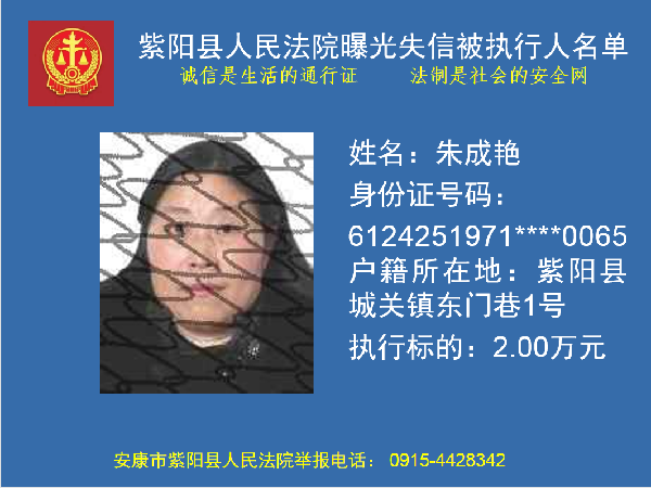 曝光失信 | 紫陽縣人民法院:關(guān)于敦促朱成艷履行法定義務(wù)的公告