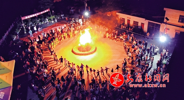 “五一”勞動(dòng)節(jié)當(dāng)日,在嵐皋縣孟石嶺鎮(zhèn),一場(chǎng)篝火晚會(huì)火熱舉行。全鎮(zhèn)干部群眾及外來(lái)游客紛紛前來(lái)享受頗具地方特色的娛樂(lè)活動(dòng)。楊倩 楊文君 攝