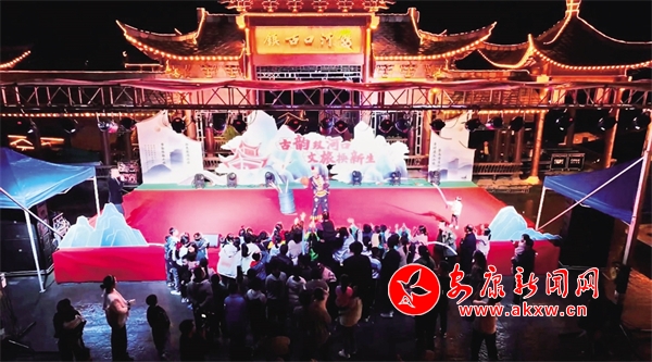 漢陰縣雙河口古鎮(zhèn)景區(qū)正在進(jìn)行文藝演出。王建霞 攝