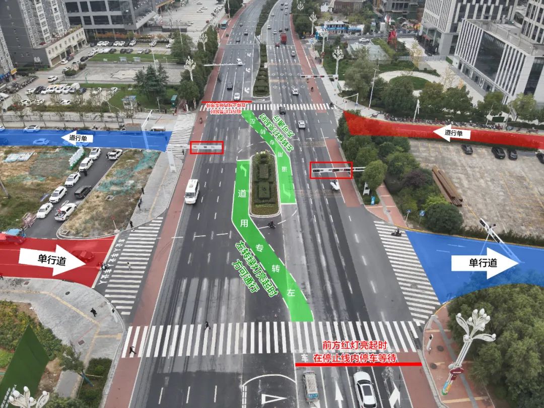 二、安康大道東西向左側(cè)車道延伸標(biāo)線(上圖綠色區(qū)域)為左轉(zhuǎn)專用道,并非左轉(zhuǎn)等待區(qū),在左轉(zhuǎn)綠燈亮起時(shí)方可通行。