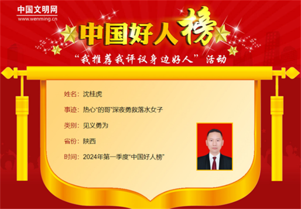 4月18日,2024年第一季度“中國好人榜”發(fā)布儀式暨全國道德模范與身邊好人現場交流活動,在江西省九江市舉辦。我市沈桂虎光榮上榜。