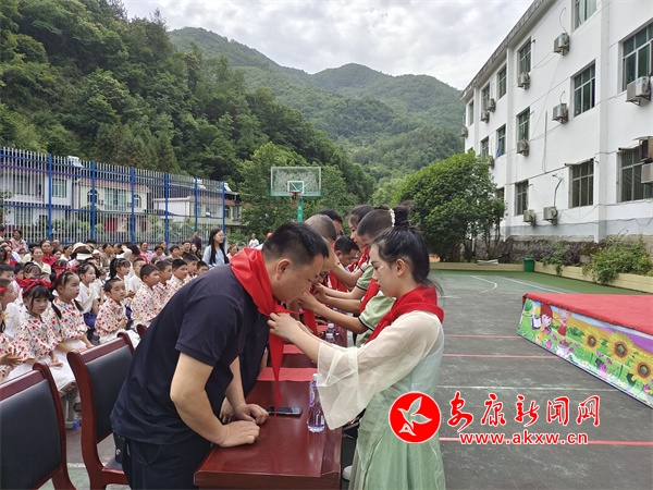 本網(wǎng)訊(通訊員?張萍)迎著火紅的隊(duì)旗,伴著嘹亮的號角,校園洋溢著節(jié)日的氛圍,5月31日,鎮(zhèn)坪縣洪石小學(xué)隆重舉行了“紅領(lǐng)巾愛祖國”新隊(duì)員入隊(duì)儀式暨慶“六一”科技藝術(shù)節(jié)。鎮(zhèn)坪縣武裝部、縣民政局、縣人社局、縣招商局、縣林業(yè)局、西安航空學(xué)院等相關(guān)領(lǐng)導(dǎo)出席此次活動,并為學(xué)校帶來教育幫扶資金,給孩子們送來了籃球、書包等禮品并致以節(jié)日的慰問。