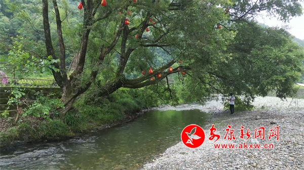 菜園緊挨著一條河。河邊,幾棵高大的麻柳樹成了幾個(gè)天然的遮陽棚。河灘上則搭建了涼棚,供更多游客休憩。