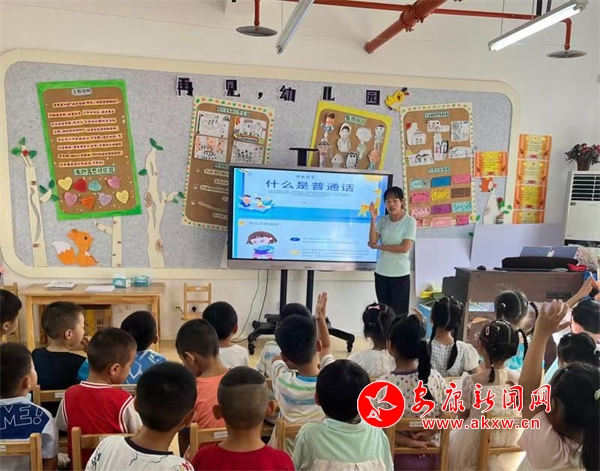 在第27屆全國推廣普通話宣傳周之際,旬陽市第一幼兒園圍繞“加大推普力度,筑牢強國語言基石”深入宣傳《國家通用語言文字法》,進一步增強幼兒語言文字規(guī)范意識和推普參與意識,營造敢說、想說、會說的語言環(huán)境,推進幼兒園的普通話教育。(通訊員 王苗)?