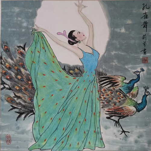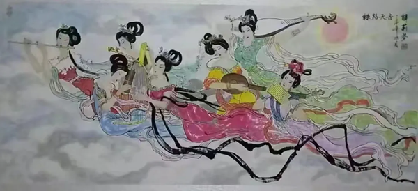 解大姐是陜北人,性格開朗、直率,說話中間或帶出一些濃重的陜北口音。雖說她主業(yè)從于政界,但她微笑的背后卻潛藏著不可掩飾的藝術(shù)天賦,揮發(fā)著令人奪目的藝術(shù)才情。繁雜的政務(wù)工作之余,她創(chuàng)作不輟,堅(jiān)持不懈,居然在多個(gè)藝術(shù)門類收獲頗豐,好評(píng)連連。寫小說,她寫出幾十萬字的長篇出版發(fā)行;寫劇本,竟拍成了電影予以公映;學(xué)國畫,亦讓藝術(shù)界的大咖贊口不絕。我雖不才,空有浮名,但深耕藝界多年,對(duì)于其中的好賴還能分出一二。我感到,一個(gè)人的人品和藝品基本一致,解大姐的藝術(shù),是扎根于她熟悉的陜北大地的藝術(shù),是生長在山峁峁上經(jīng)歷風(fēng)霜雨雪的藝術(shù),就像那陜北倔強(qiáng)的疙瘩柳,散發(fā)著對(duì)土地對(duì)生活的親近和熱情,對(duì)人生價(jià)值實(shí)現(xiàn)的不屈和追求??吹剿膰嬓伦?,有陜北剪紙等民間藝術(shù)的滋養(yǎng)和影響,真切而樸實(shí)。她的飛天人物系列,泥古而不落窠臼,使我想到疙瘩柳條隨風(fēng)擺動(dòng)的婀娜風(fēng)姿,溫溫潤潤,令人遐思和向往;她的花鳥畫作,使我想到陜北山野一片蒼茫之間,一朵兩朵盛開的山丹丹花,嬌艷得令人不忍觸手;她的山水畫作,又猶如陜北山原上嫩黃的棗花,洋溢著撲面而來的質(zhì)樸、清新和率真之氣。