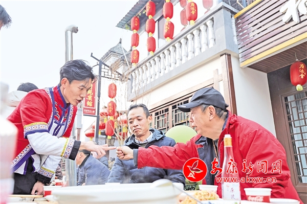 長(zhǎng)街里的宴席上坐無(wú)缺席;一道道精美的庖湯佳肴陸續(xù)上場(chǎng),席間,賓客們喝著美酒、品著美食、看著節(jié)目,歡聲笑語(yǔ)不斷。臺(tái)上的節(jié)目精彩紛呈,讓賓客們目不暇接,不時(shí)報(bào)以熱烈掌聲,充分展現(xiàn)了石泉縣深厚的文化底蘊(yùn)和獨(dú)特的民俗文化。不少外地游客慕名而來(lái),帶著親友來(lái)到石泉,親身感受特色庖湯宴。豪邁的秦巴漢子激情劃拳喝酒,在場(chǎng)的游客市民都沉浸在新年的喜悅中,舉杯暢飲,現(xiàn)場(chǎng)熱鬧非凡,滿滿年味十里香飄……