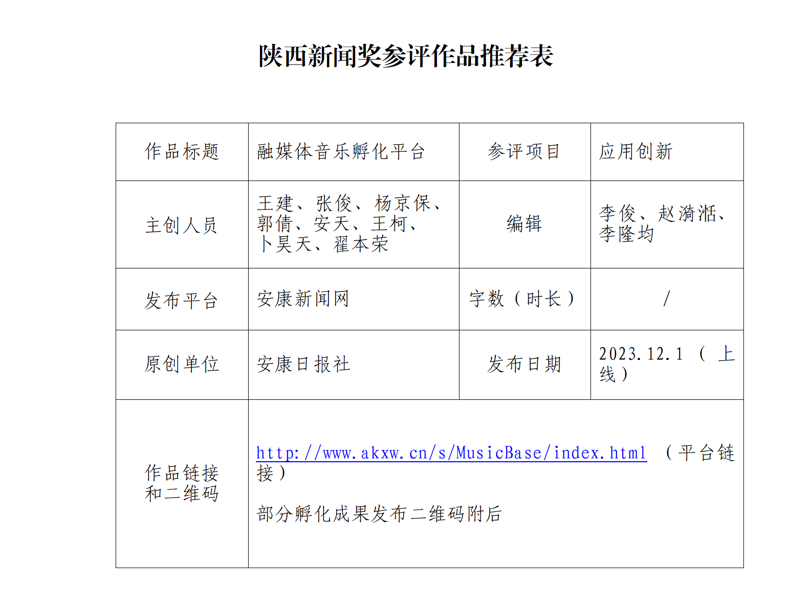 經(jīng)過(guò)社黨委研究決定,擬推薦以下2件新聞作品參評(píng)“2024年度陜西新聞獎(jiǎng)融合報(bào)道、應(yīng)用創(chuàng)新和新媒體新聞專欄”。公示時(shí)間從2025年1月6日至2025年1月10日,公示期5個(gè)工作日。如有不同意見(jiàn),請(qǐng)向安康日?qǐng)?bào)社機(jī)關(guān)紀(jì)委、新聞管理部反映。