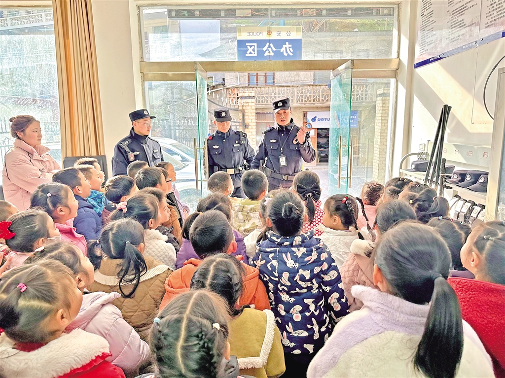1月8日,紫陽縣公安局高橋派出所舉行“萌娃進警營 警心伴童心”主題110宣傳日警營開放活動,邀請轄區(qū)學校師生走進警營,感受警營文化。陳益謙 攝