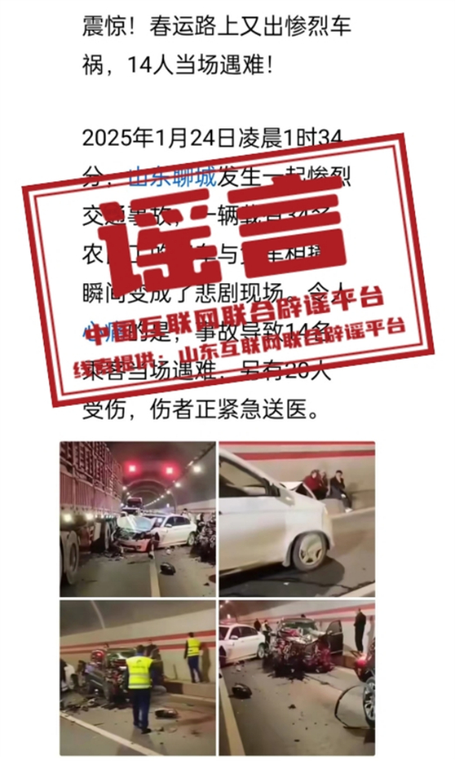 謠言:山東聊城隧道多車相撞?