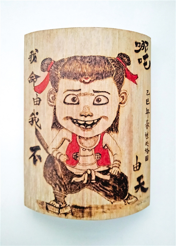 與此同時(shí),在石泉,另一位非遺傳承人也不甘落后,用小小的烙鐵為大家勾勒出了哪吒、申公豹等鮮活的形象。退役軍人楊聰明,身為石泉烙畫非遺代表性傳承人,他微笑著向筆者分享創(chuàng)作初衷:“看到哪吒這個(gè)形象如此火爆,孩子也鬧著讓我畫一個(gè),我便也嘗試著拿起了烙鐵。剛開(kāi)始畫的時(shí)候比較隨性,畫出效果后再進(jìn)行仔細(xì)修改。我深知,想要塑造出生動(dòng)的形象,必須付出大量的時(shí)間和精力去精雕細(xì)琢。由此我也更加敬佩電影團(tuán)隊(duì),他們的付出和努力不言而喻。我們都是在用自己的方式,向中華國(guó)粹致敬!”