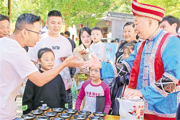 來(lái)自臺(tái)灣的游客阿偉第一次體驗(yàn)這“驚心動(dòng)魄”的待客禮,雙手接碗,仰頭飲盡,再用力將碗口朝下摔向青石板。“哐當(dāng)”一聲脆響,瓷片四濺,周?chē)D時(shí)響起一片喝彩?!八ね氲臅r(shí)候,心里真痛快!”阿偉笑著說(shuō)。