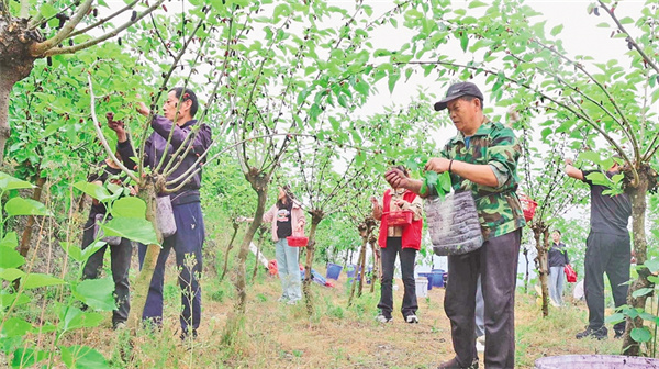 劉術(shù)榮的桑樹枝繁葉茂,桑葚掛滿枝頭,吸引了市民和游客觀光采摘。他每天請了十幾名工人幫忙,抓緊時(shí)間采收桑葚。經(jīng)過科學(xué)管護(hù),這片果桑園每年能產(chǎn)桑葚超過20噸,帶動(dòng)30余戶村民實(shí)現(xiàn)穩(wěn)定增收。
