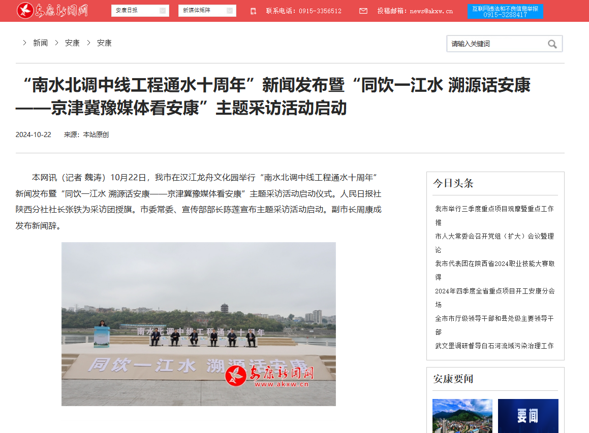 《“南水北調(diào)中線工程通水十周年”新聞發(fā)布暨“同飲一江水 溯源話安康——京津冀豫媒體看安康”主題采訪活動啟動》(2024-10-22發(fā)布)