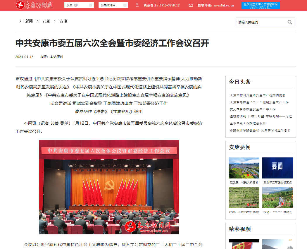 《中共安康市委五屆六次全會暨市委經(jīng)濟工作會議召開》(2024-01-13發(fā)布)