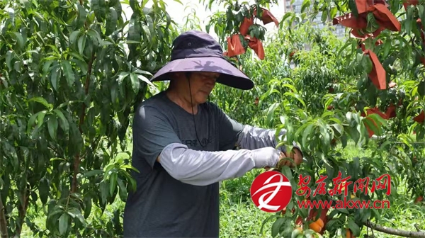 同樣迎來收獲的還有城關(guān)鎮(zhèn)的黃桃,在城關(guān)鎮(zhèn)龍嶺村的黃桃種植基地,連片的桃樹郁郁蔥蔥,金燦燦的黃桃壓彎了枝條,空氣中彌漫著誘人的桃香?;刎?fù)責(zé)人劉宏正忙著采摘,臉上洋溢著燦爛的笑容,他一邊采摘一邊介紹道:“我們這個桃園有金鳳黃桃、黃金黃桃、秋彤桃和冬桃四個品種,一共有9畝多,從6月中旬到10月左右,陸續(xù)都有成熟的桃子?!?/p>