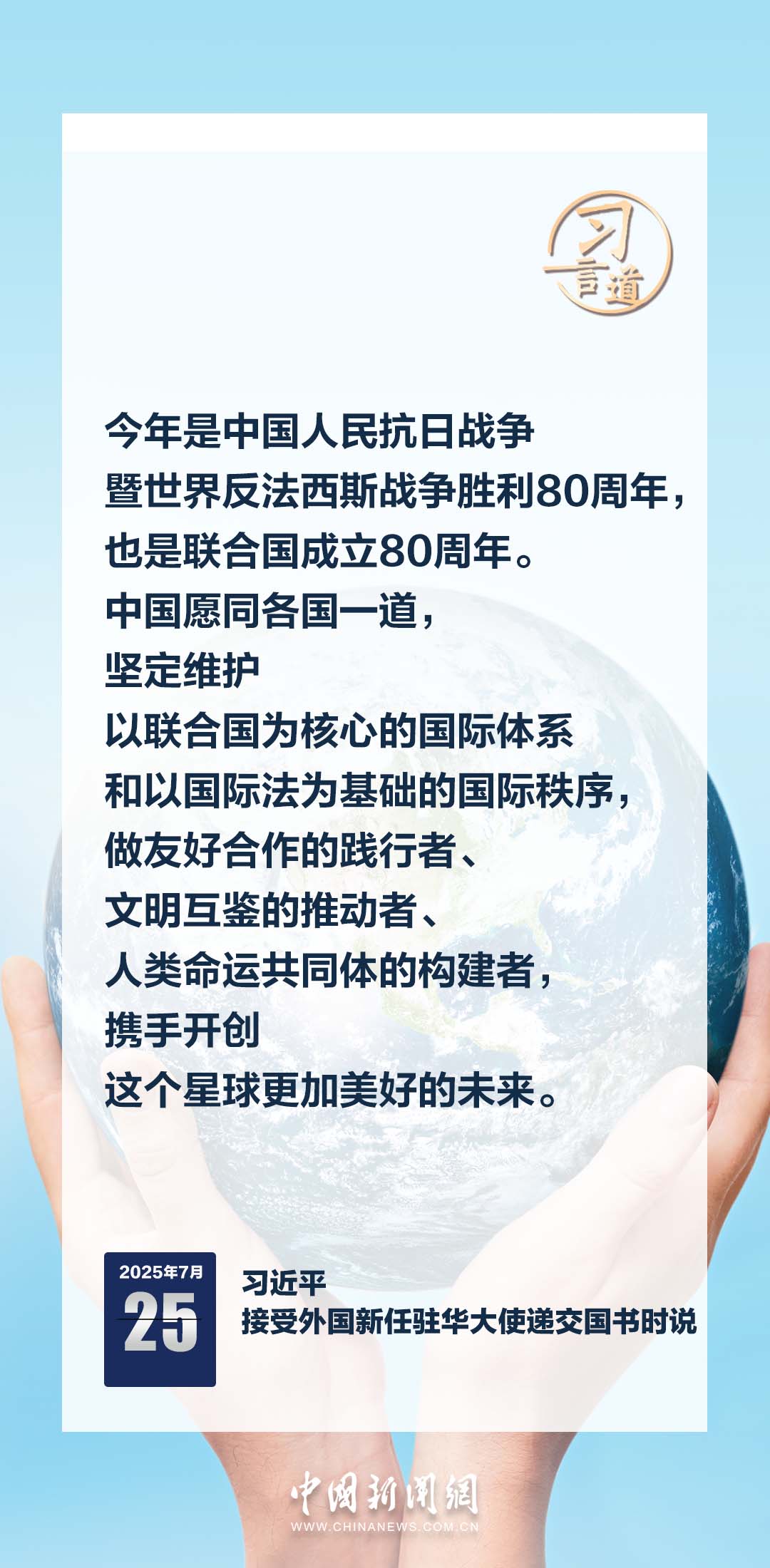 7月25日,國(guó)家主席習(xí)近平在北京人民大會(huì)堂接受16位駐華大使遞交國(guó)書。儀式結(jié)束后,習(xí)近平在北京廳對(duì)使節(jié)們發(fā)表講話。習(xí)近平指出——