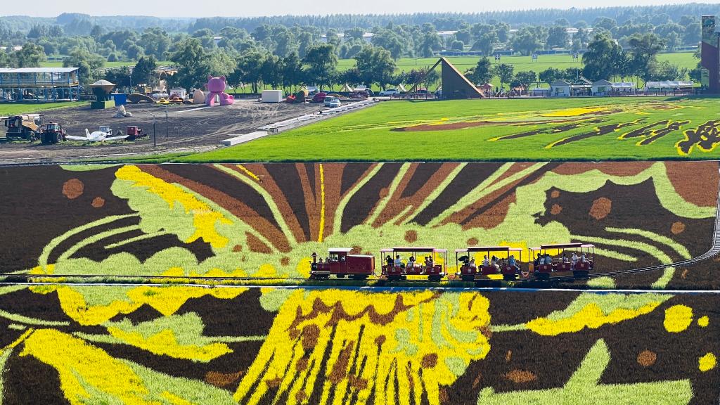 在北大荒集團閆家崗農場的“藝術稻田”里,6幅稻田畫在165畝稻田中徐徐展開——冰雪畫卷盡顯百年冰城魅力,四季生態(tài)畫卷演繹著四季浪漫;萌寵卡皮巴拉,傳遞出平靜與治愈的力量;后羿射日、女媧補天、神筆馬良這些經(jīng)典神話在稻田中煥發(fā)新生,與多彩的稻浪共同演繹著中華文明的永恒魅力。100多公里外,北大荒集團四方山農場的玉米田,青紗帳漸染金黃,工作人員張昊正遙控無人機,巡航監(jiān)測作物成熟度,科技與傳統(tǒng)在此刻共舞。