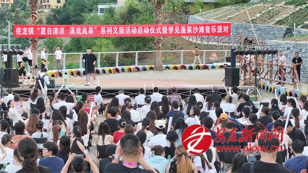 佐龍鎮(zhèn)黨委、政府因勢利導(dǎo),開發(fā)了蓬萊仙境景區(qū)及馬宗村民宿集群,又把河灣變成了露天公共文化場所。他們舉辦的沙灘音樂節(jié),邀請本地的音樂舞蹈愛好者駐場,鼓勵當(dāng)?shù)厝罕姟⑼鈦碛慰蛥⑴c,以參與活動、宣傳活動的數(shù)量打卡積分,兌換文創(chuàng)產(chǎn)品和文化禮品。