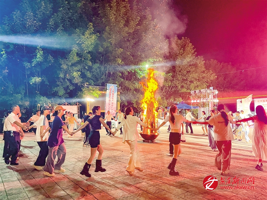 晚會(huì)尾聲,所有嘉賓與游客圍聚在篝火旁載歌載舞,歌聲、笑聲與火光交織在一起,構(gòu)成了這個(gè)夜晚最溫暖的回憶。
