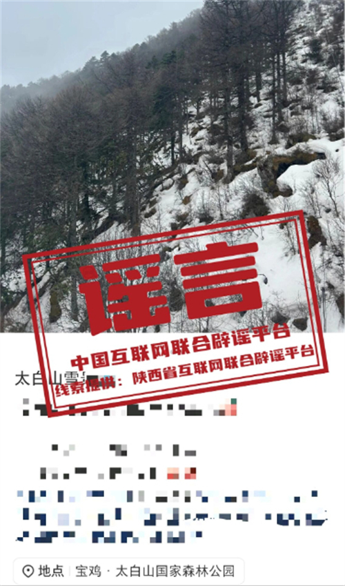 真相:近日,有網(wǎng)民發(fā)帖稱“陜西太白山迎來今秋第一場大雪”,并曬出視頻畫面,山林間白雪紛飛,屋檐上覆蓋著薄雪。相關(guān)視頻引發(fā)關(guān)注,有網(wǎng)民表示立即前往景區(qū)賞雪。對此,景區(qū)工作人員回應(yīng)稱,網(wǎng)傳視頻為往年下雪場景,目前太白山正在下大雨,景區(qū)已經(jīng)關(guān)閉。提醒游客出行前應(yīng)關(guān)注景區(qū)的實(shí)時(shí)公告與天氣情況,以免受虛假信息誤導(dǎo)。(來源:陜西省互聯(lián)網(wǎng)聯(lián)合辟謠平臺、@上游新聞)