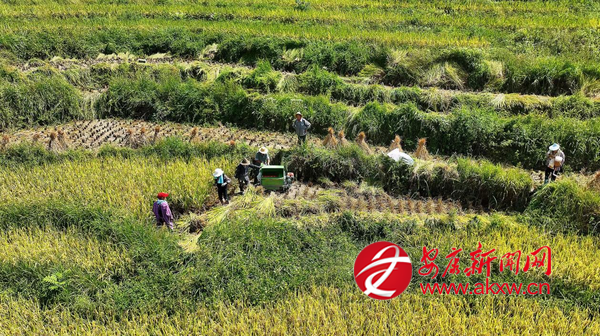 金秋時(shí)節(jié),漢陰縣鳳堰梯田景區(qū)迎來(lái)了一年中最動(dòng)人的季節(jié)。層層疊疊的梯田上,稻穗低垂、金黃遍野,農(nóng)戶(hù)們穿梭其間,描繪出一幅忙碌而喜悅的豐收畫(huà)卷。(通訊員 文婷)