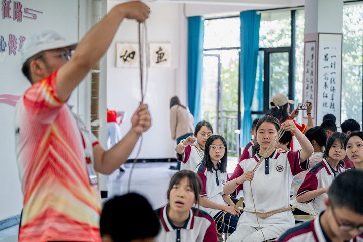 ? 2025年5月12日,云南省昭通市威信縣第一中學(xué)學(xué)生在大屏上紅色研學(xué)實(shí)踐基地體驗(yàn)編織草鞋。200余名學(xué)生在紅色研學(xué)實(shí)踐基地親手編織草鞋、制作蠟染,并參觀了扎西會(huì)議舊址、紅軍長征過云南情景體驗(yàn)館,在實(shí)踐互動(dòng)中重溫紅色革命歷史。威信縣立足紅色文化資源優(yōu)勢,先后建成扎西會(huì)議紀(jì)念館、紅軍長征標(biāo)語館等紅色文化展館,以舊址遺跡為“教室”,以文物史料為“教材”,設(shè)計(jì)開發(fā)多門精品研學(xué)課程和線路,在深入開展紅色研學(xué)系列活動(dòng)中傳承紅色基因。