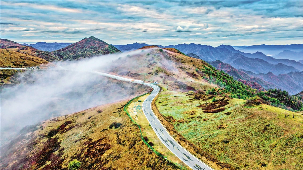 近日,薄霧如紗般漫過平利縣正陽草甸山脊上的盤山道。近年來,當?shù)卮罅Πl(fā)展旅游交通,方便更多游客前來領(lǐng)略秦嶺巴山的雄渾壯美。皮勇維 攝