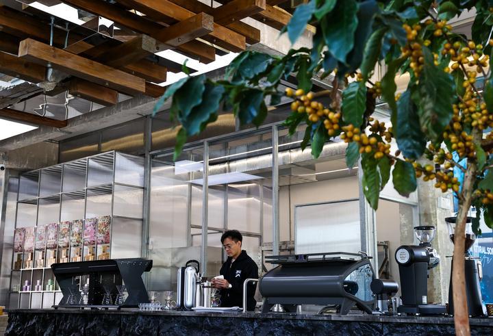 2025年12月10日,旅居云南的韓君瑋在位于昆明的南來盛咖啡店內(nèi)制作咖啡。韓君瑋自清華大學(xué)畢業(yè)后,已在咖啡行業(yè)耕耘十余年。2024年,他受聘成為云南一家老字號(hào)咖啡品牌的品牌總顧問,從此投身到云南咖啡的產(chǎn)品研發(fā)和品牌推廣工作中。一年多來,他每月都會(huì)來到昆明,短則幾天,長則數(shù)周,開啟了一種“半旅居、半工作”的生活模式。“云南風(fēng)景優(yōu)美、氣候宜人,我很享受這樣的狀態(tài)?!表n君瑋說。