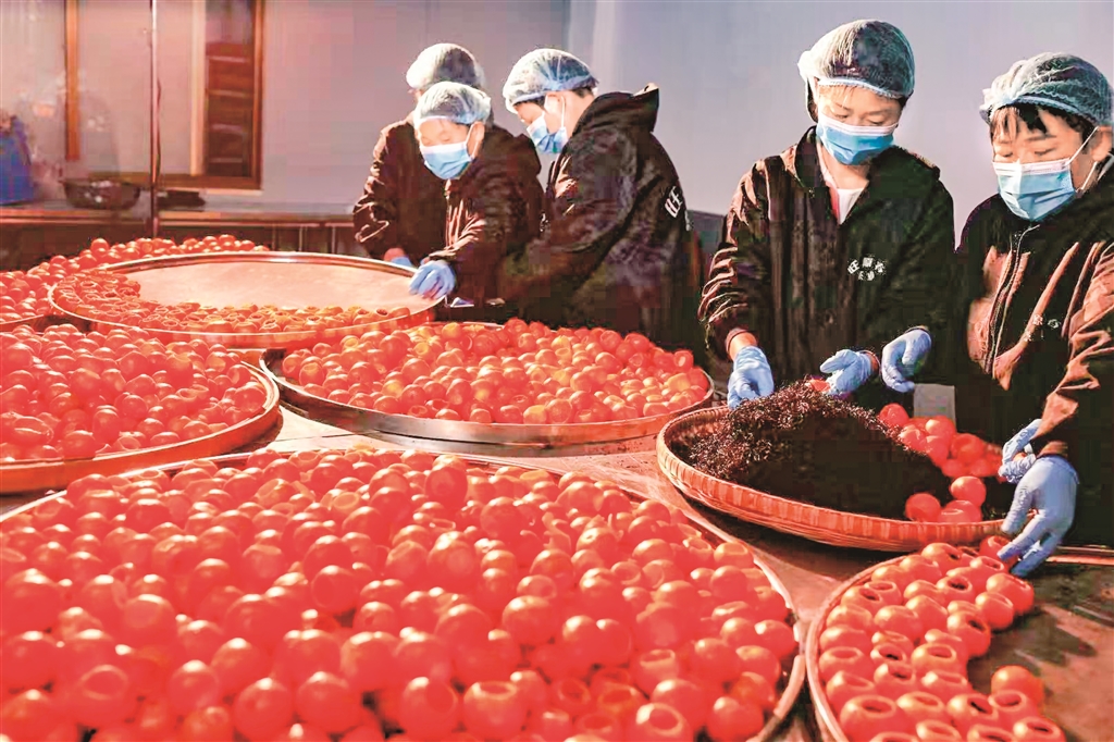生產(chǎn)車間內(nèi),工人們動作嫻熟,選果、清洗、開蓋、掏挖果肉、填茶、烘干……每一道工序都有條不紊。他們大都是附近的村民,本是茶葉生產(chǎn)的淡季,如今卻因?yàn)樾¢俨枳兂闪嗽鍪盏耐尽?/p>