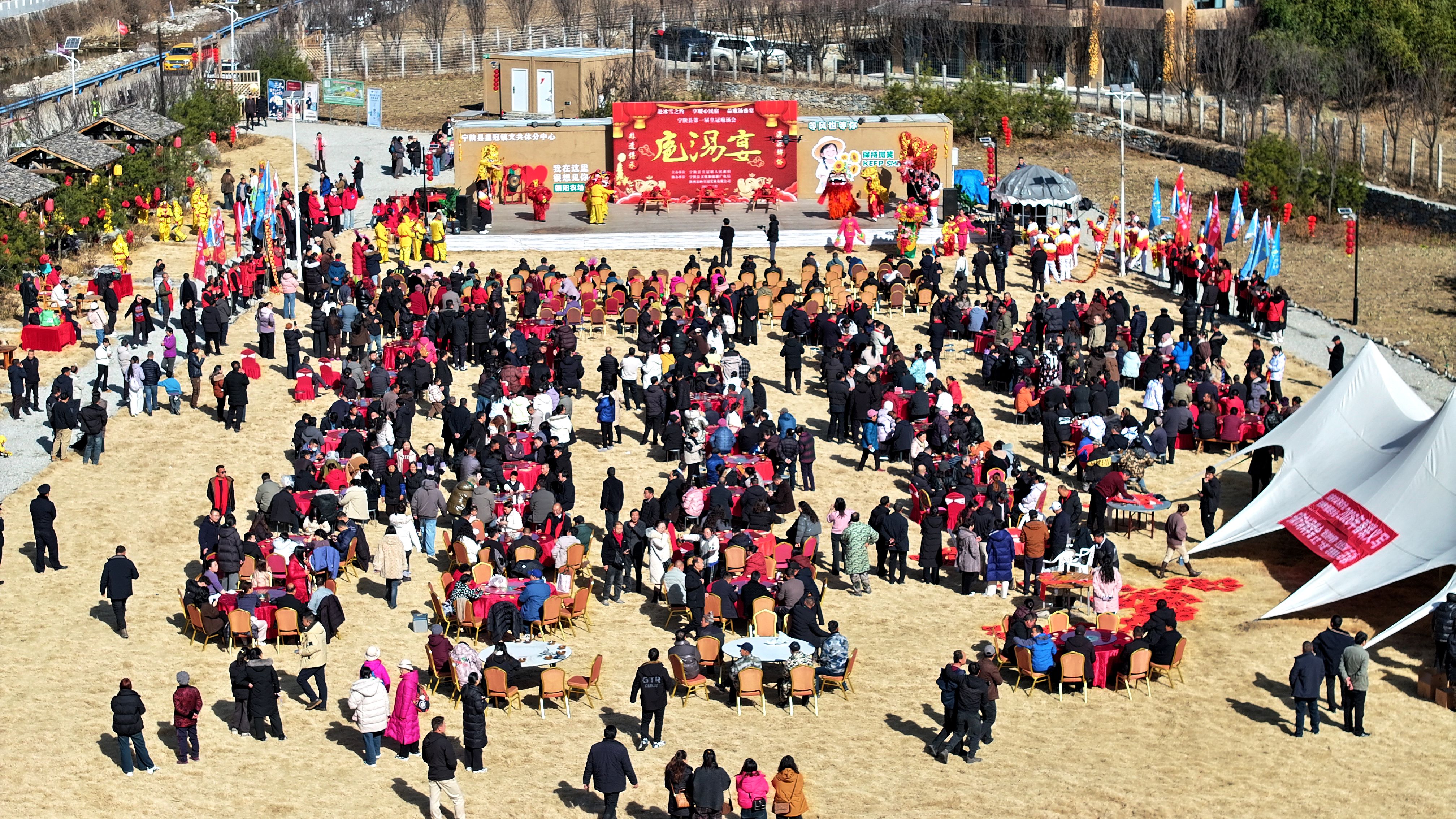 文化賦能是寧陜冬春旅游的核心亮點(diǎn)。1月16日,皇冠鎮(zhèn)朝陽(yáng)農(nóng)場(chǎng)里首屆皇冠庖湯會(huì)熱鬧開(kāi)席,《二嫂夸皇冠》的表演點(diǎn)燃現(xiàn)場(chǎng)氛圍,舞獅、彩船等傳統(tǒng)民俗輪番上演,莊重的祭天儀式傳遞著農(nóng)耕文明的厚重?;顒?dòng)現(xiàn)場(chǎng)墨香陣陣,鄉(xiāng)土菜肴香氣四溢?!坝玫亩际乾F(xiàn)殺黑豬,味道特別地道?!蓖獾赜慰徒抠澆唤^口,西安游客葉格芳也直言:“專(zhuān)程前來(lái),不虛此行?!贝舜吴覝珪?huì)共吸引游客2300余人,實(shí)現(xiàn)旅游消費(fèi)30萬(wàn)元。