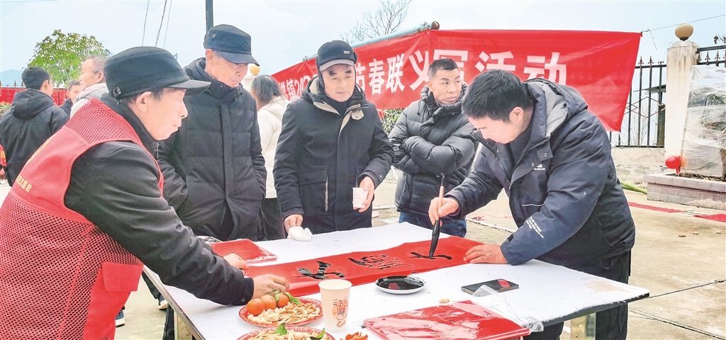 “‘村晚’既注重豐富群眾的文化生活,也著力帶動村民增收?!睏羁艽灏?lián)干部、石梯鎮(zhèn)農(nóng)村農(nóng)業(yè)中心主任王化澎介紹了活動的初衷。現(xiàn)場設(shè)置的送春聯(lián)區(qū),書法愛好者揮毫潑墨,一副副對聯(lián)、一個個“?!弊直淮迕裥老步舆^;就業(yè)推薦區(qū)前,大家認(rèn)真查看《漢濱區(qū)2026年用工單位招聘崗位需求表》,挑選心儀崗位;農(nóng)副產(chǎn)品展銷區(qū),農(nóng)家自產(chǎn)的紅薯、蔬菜,自制的豆腐乳、醪糟、變蛋等,吸引了眾多來自安康中心城區(qū)的市民爭相搶購。