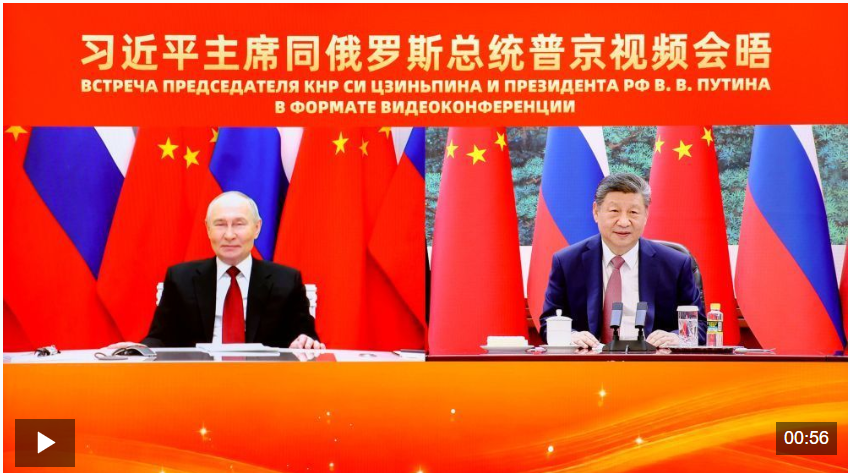 2月4日下午,國家主席習(xí)近平在北京人民大會堂同俄羅斯總統(tǒng)普京舉行視頻會晤。