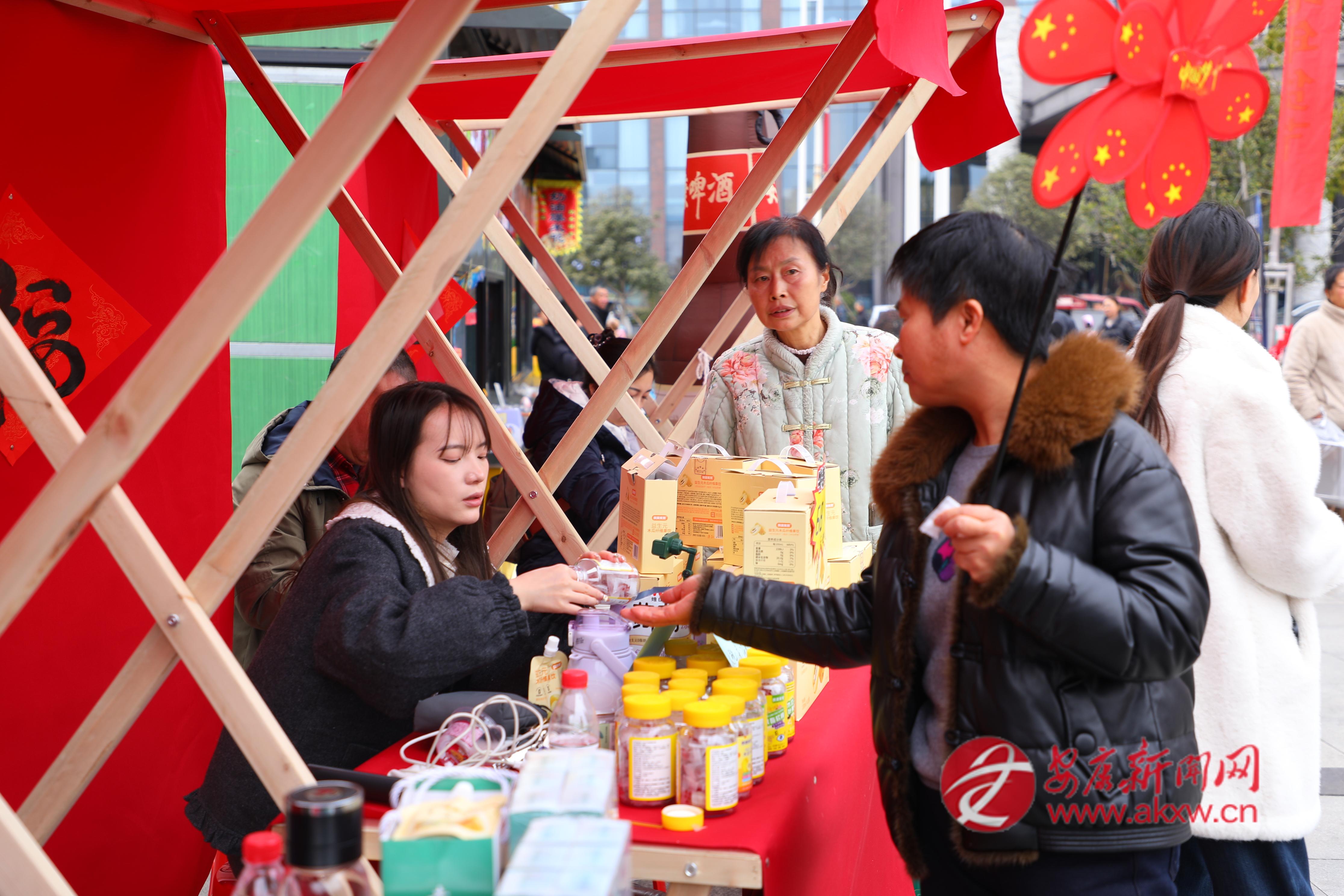 舞臺之上好戲連臺,集市之中更是熱火朝天。年貨展銷區(qū)內(nèi)攤位林立、人潮涌動,20余家企業(yè)帶來的安康富硒茶、紅薯粉條、木瓜飲、土蜂蜜、黃連牙膏等安康特色產(chǎn)品琳瑯滿目,讓人目不暇接?!奥犃藬傊髦v解茶山生態(tài)和制茶工藝,感覺買得特別踏實,帶回去自己喝或當(dāng)作新年伴手禮都合適,能實實在在支持本地茶農(nóng),這年貨買得暖心又有意義?!笔忻窳蜗壬嶂鴦傎徣氲牟枞~笑著說。