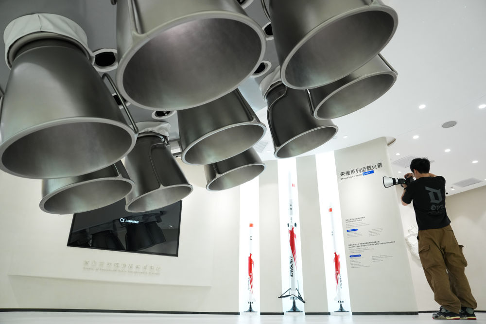 強化產(chǎn)業(yè)圈聯(lián)動發(fā)展,是北京持續(xù)提升科技成果區(qū)域內(nèi)轉(zhuǎn)化效率和比重的有效舉措。以商業(yè)航天產(chǎn)業(yè)為例,目前,扎根北京的商業(yè)航天百強企業(yè)、上市企業(yè)和獨角獸企業(yè)約占全國半壁江山。產(chǎn)業(yè)鏈覆蓋運載火箭、衛(wèi)星制造、地面站及終端設(shè)備、衛(wèi)星應(yīng)用服務(wù)全領(lǐng)域。這是2025年6月18日在北京經(jīng)濟技術(shù)開發(fā)區(qū)藍(lán)箭航天空間科技股份有限公司拍攝的朱雀系列運載火箭模型。
