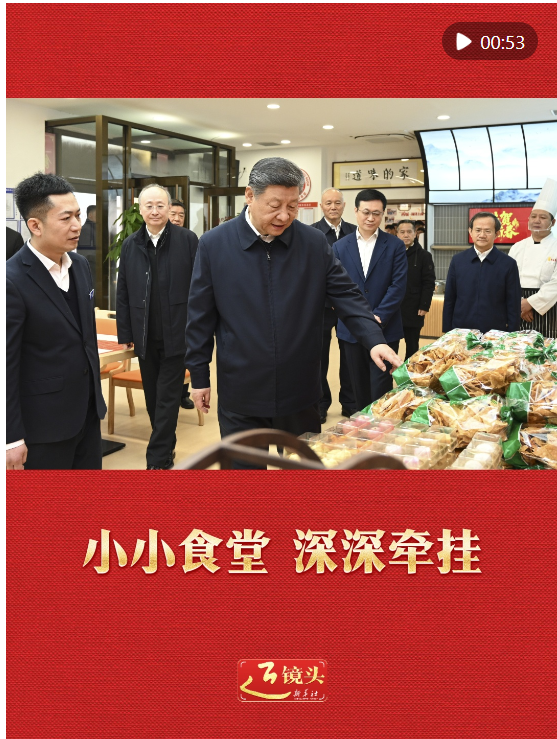 在地方考察調(diào)研時,習(xí)近平總書記經(jīng)常走進(jìn)社區(qū)、學(xué)校等地食堂了解情況。一次次詢問、一句句關(guān)切,折射的是民生牽掛,傳遞的是濃濃真情。