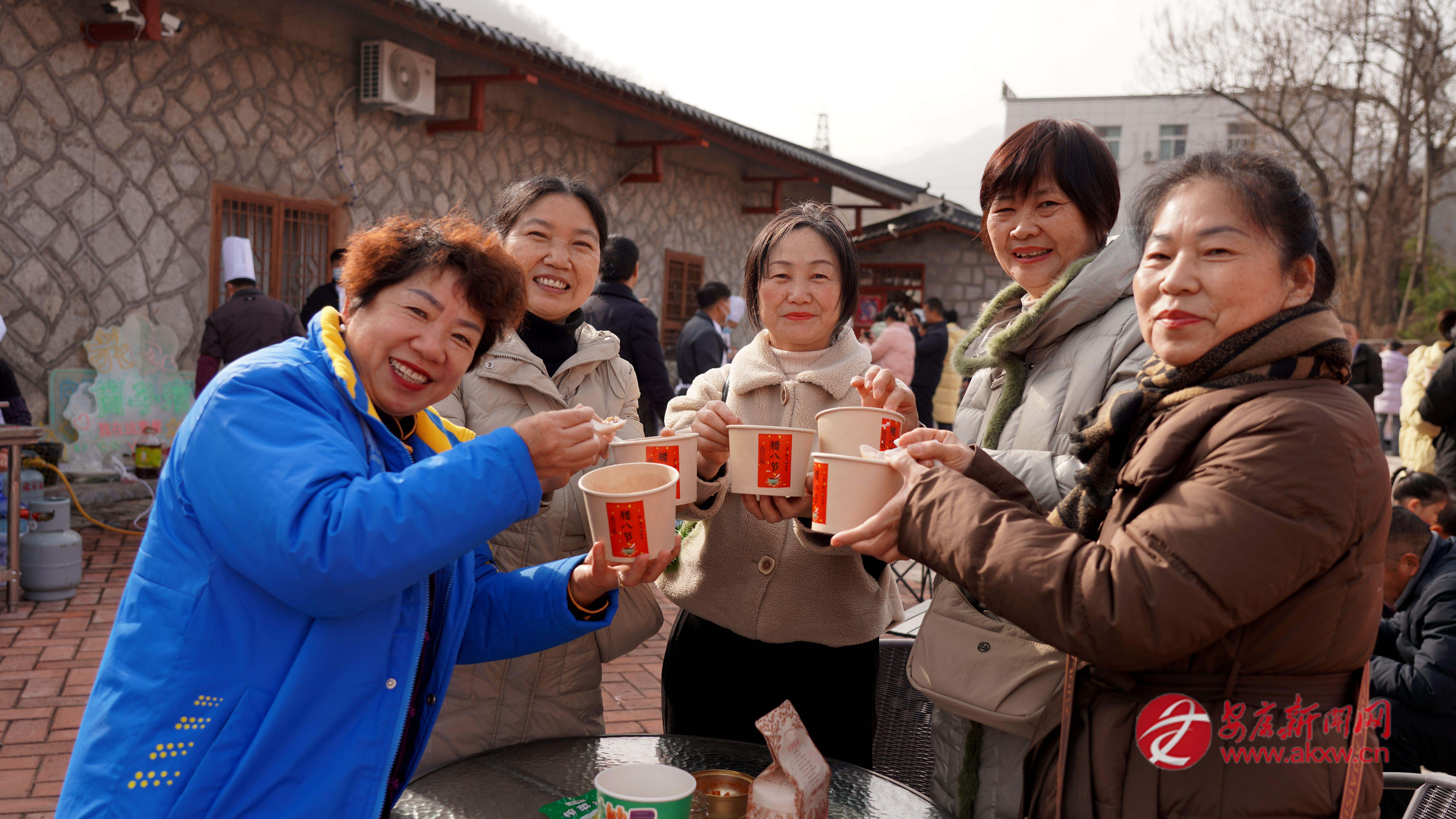 城關(guān)鎮(zhèn)漁灣逸谷則復(fù)刻了傳統(tǒng)庖湯宴場景。兩頭年豬現(xiàn)場宰殺,50桌壩壩宴擺滿臘味燉菜,5000余名游客圍坐共享原汁原味的農(nóng)家風(fēng)味。“食材新鮮、空氣清新、飯菜健康!”西安游客劉政霖由衷贊嘆。