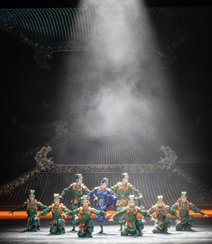 這是舞蹈詩劇《只此青綠》的演出劇照(2024年7月18日攝)?!吨淮饲嗑G》采用平行空間的敘事方式,從故宮博物院青年研究員的“展卷人”視角出發(fā),講述北宋著名畫家王希孟創(chuàng)作《千里江山圖》的故事。該劇連續(xù)3年穩(wěn)居中國舞劇票房榜首,全國巡演超800場,赴多個國家和地區(qū)演出50余場,成為傳統(tǒng)文化創(chuàng)新表達、中國藝術國際表達的典范之作。