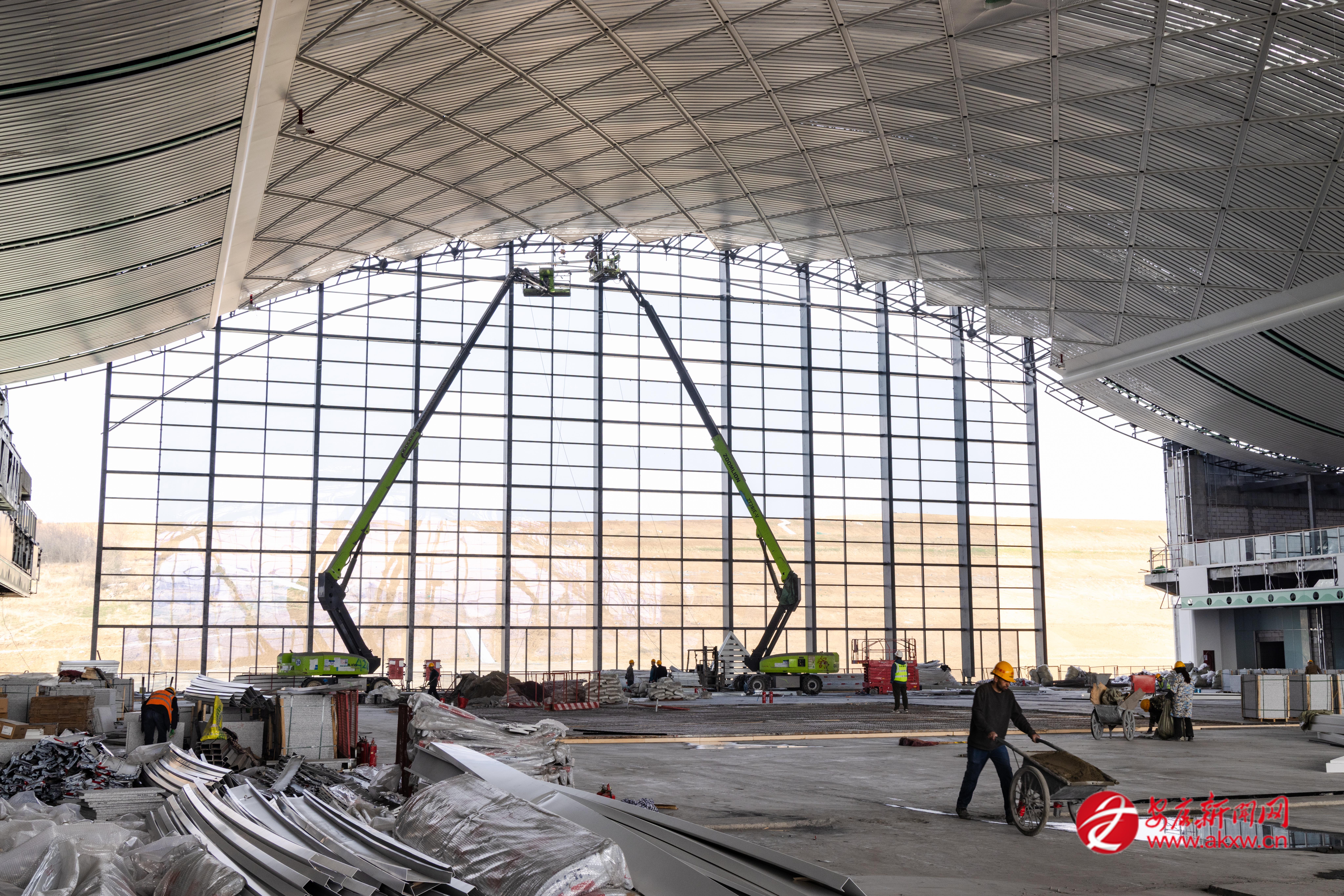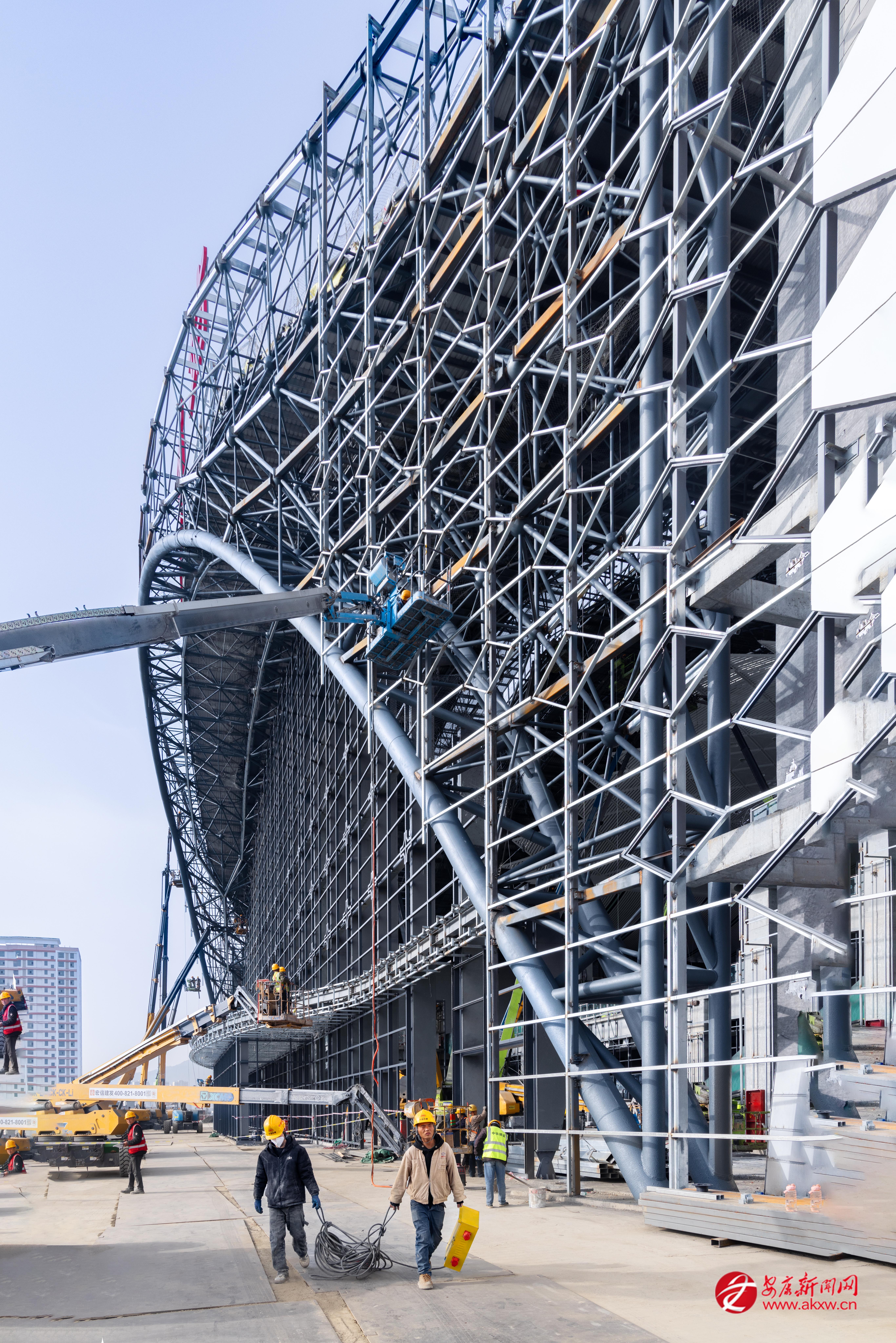 2月22日,西康高鐵安康西站建設工地一派繁忙景象。據了解,自2月8日安康西站項目建設進入攻堅提速階段,為確保工程如期交付投用,春節(jié)期間,中鐵建設西康站房項目部在落實管理、網格化監(jiān)督、夯實安全責任、安排好節(jié)日期間職工生活的同時,科學調度、精心組織,扎實推進站房裝飾裝修、幕墻安裝等施工進度。 郭圣杰 攝