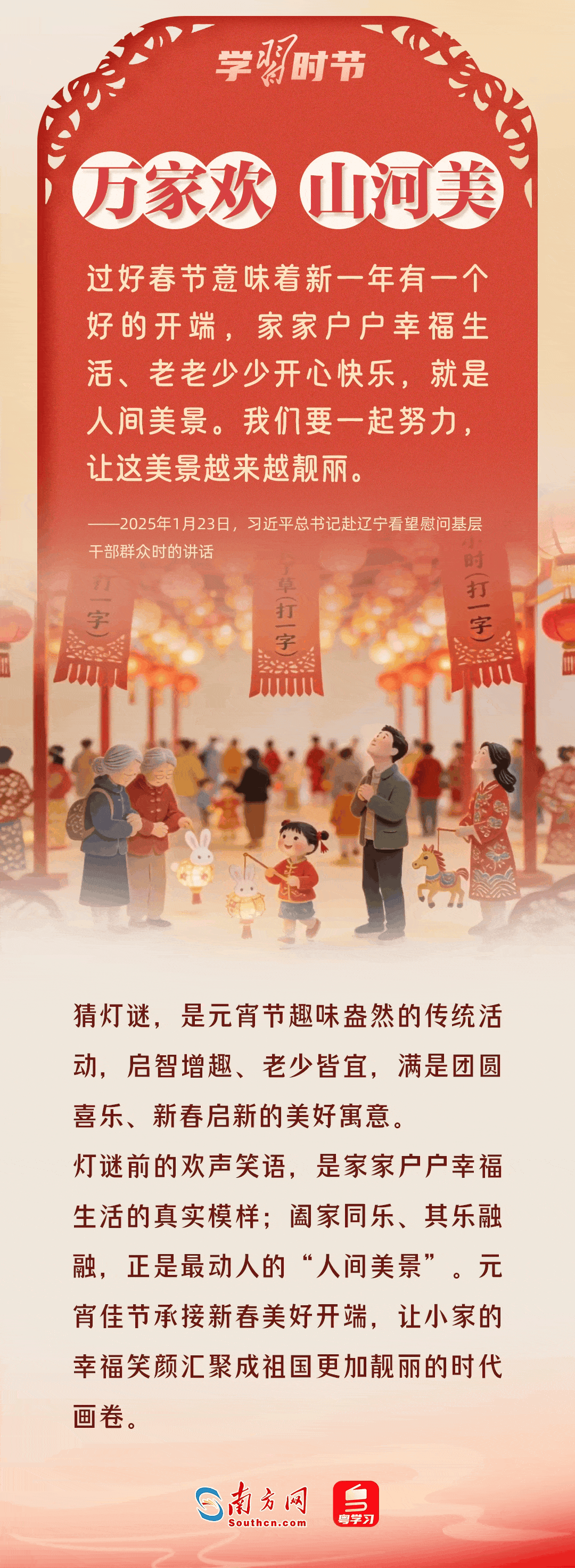 值此元宵佳節(jié),讓我們循著總書記的溫暖話語(yǔ),在燈火璀璨中,感受深沉的家國(guó)牽掛與殷切的深情囑托。