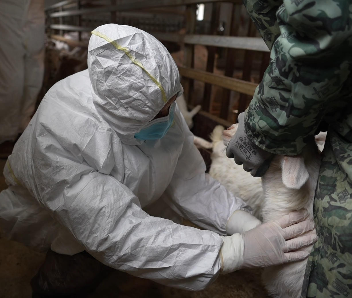 △ 畜牧獸醫(yī)中心工作人員正在檢測(cè)樣本