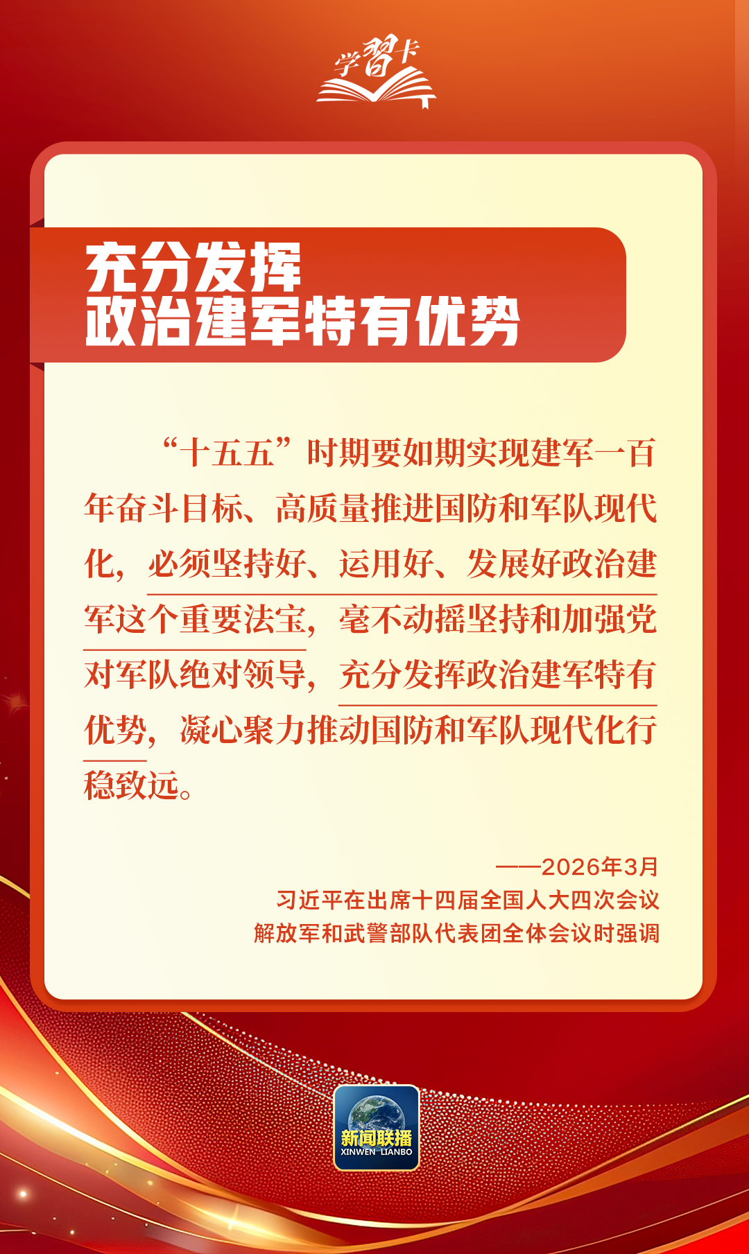 3月5日至7日,習(xí)近平總書(shū)記先后參加江蘇代表團(tuán)審議、看望全國(guó)政協(xié)委員、出席解放軍和武警部隊(duì)代表團(tuán)全體會(huì)議,圍繞經(jīng)濟(jì)大省發(fā)展、健康中國(guó)建設(shè)、政治建軍等重大議題作出深刻闡釋、提出明確要求,為“十五五”開(kāi)好局、起好步提供科學(xué)指引。