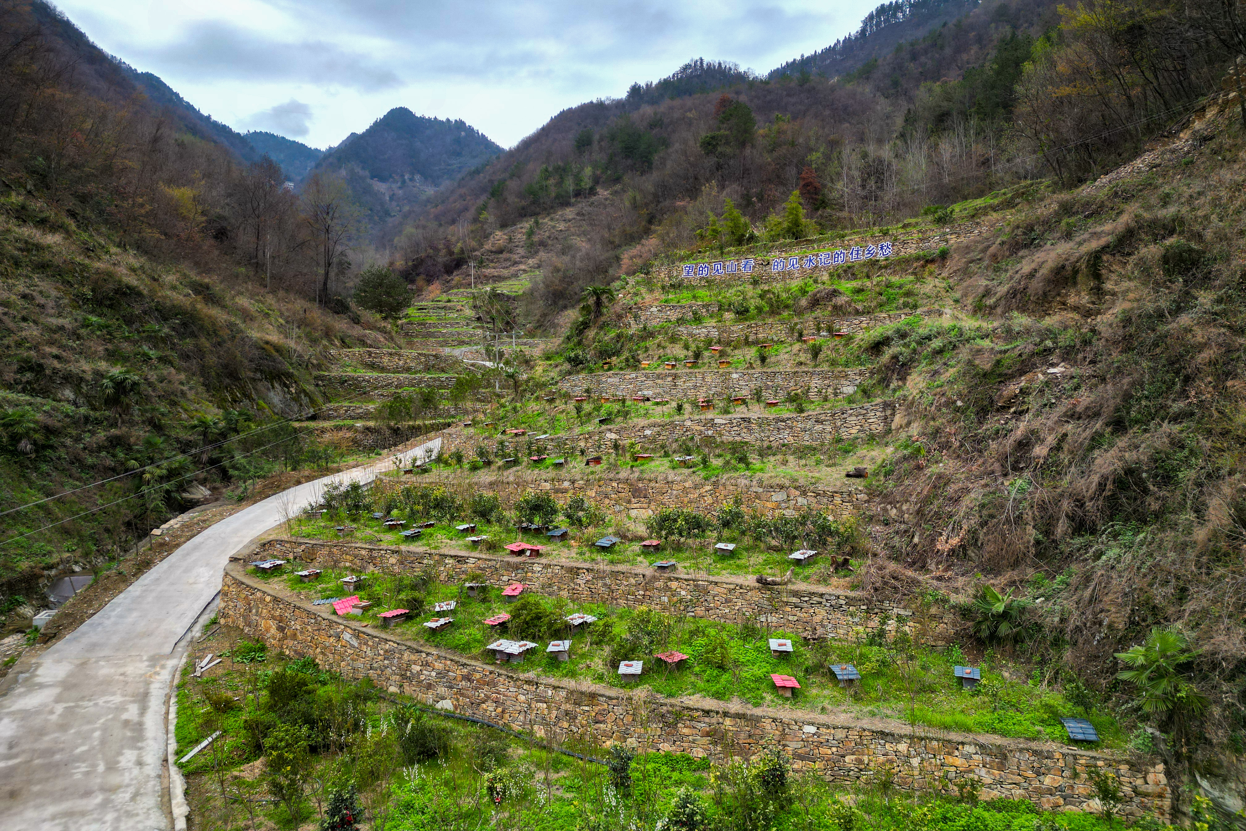 如今,在各級政府的關(guān)心和支持下,鳳凰山已煥然一新:護坡堅固,梯田平整,石階通頂;紅豆杉亭亭玉立,蜂糖李花朵盈枝;7口冷水魚塘錯落有致,新疆阿勒泰冷水魚、美國紅黑鱒等優(yōu)質(zhì)魚種在水中暢游;300箱蜂群花間采蜜;山泉水廠、蜂蜜水廠建設(shè)完工,一座集生態(tài)、觀光、種植于一體的植物公園在鳳凰山里悄然崛起。