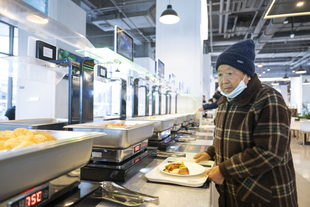 2025年11月25日,老人在雄安新區(qū)啟動(dòng)區(qū)文華社區(qū)華序府智慧食堂內(nèi)取餐。在這座食堂,居民“刷臉”即可完成身份識(shí)別,取餐時(shí)系統(tǒng)自動(dòng)綁定餐盤(pán)并實(shí)時(shí)結(jié)算,實(shí)現(xiàn)無(wú)感支付。此外,取餐區(qū)具備智能稱(chēng)重與熱量測(cè)算功能、健康一體機(jī)可以生成健康報(bào)告并提供飲食建議。