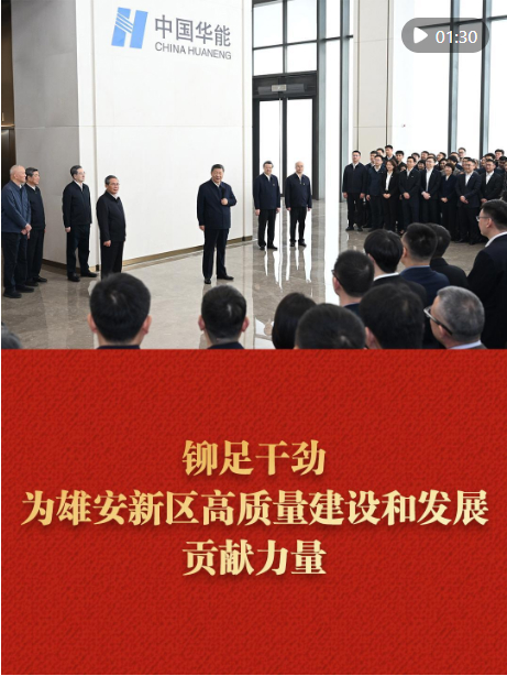 3月23日,習(xí)近平總書記來(lái)到河北雄安新區(qū),察看啟動(dòng)區(qū)建設(shè)進(jìn)展,考察中國(guó)華能集團(tuán)有限公司,了解雄安新區(qū)建設(shè)發(fā)展情況,親切慰問(wèn)入駐和在建疏解單位干部職工代表。